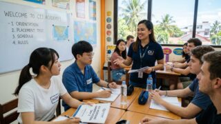 セブ留学初日は何をする?実体験をもとに、オリエンテーション・クラス分けテスト・街案内の流れを解説。社会人目線で感じた不安やリアルな体験も紹介します。